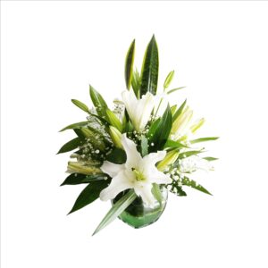 Arreglo De Condolencias En Base De Vidrio Con Lirios Blancos